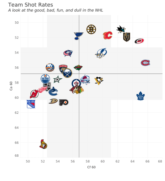 Ne rien lâcher, finir ses actions offensives, même si cela doit se terminer par une mise en échec avant, jouer pour un collectif, et enfin, tirer au but avec le palet. Le travail de récupération est important mais ses joueurs doivent aussi “tirer au pu…n de but“. Et il est grandement possible que la statistique principale de mesure des progrès des Rangers se situe là. La différence entre les tirs pour et contre.